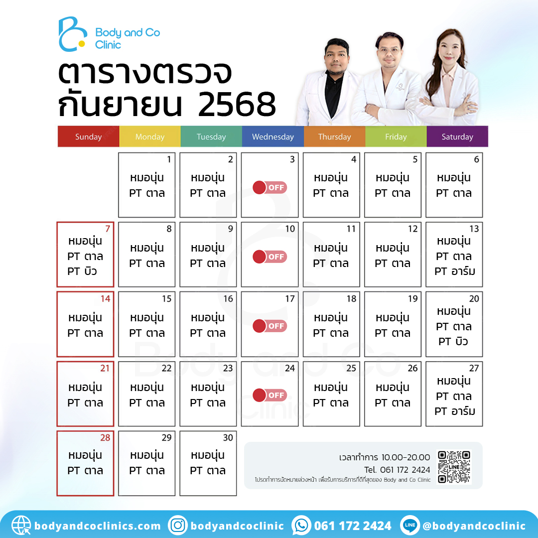 ตารางแพทย์เข้าตรวจประจำเดือน